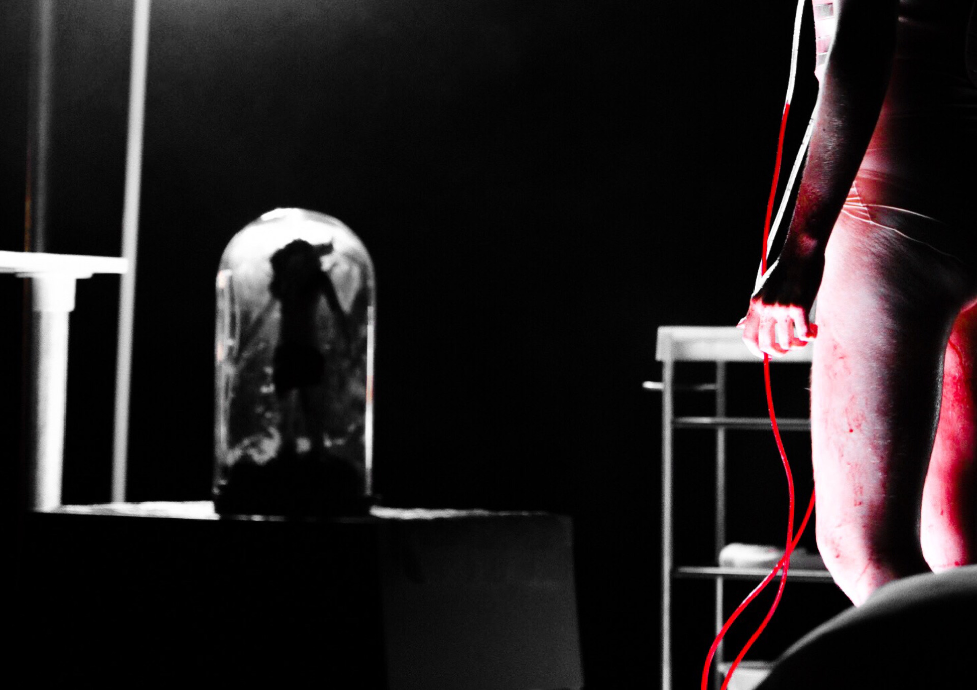 Už při příchodu do sálu divák spatřil několik průhledných hadiček natažených od technického pultu přes celé jeviště až k performerovi. Stál v jakémsi bazénku, oděn v bílém rouchu, částečně připomínajícím tradiční kostým Pierota, částečně snad až panenku Marii či klauna z filmu To.