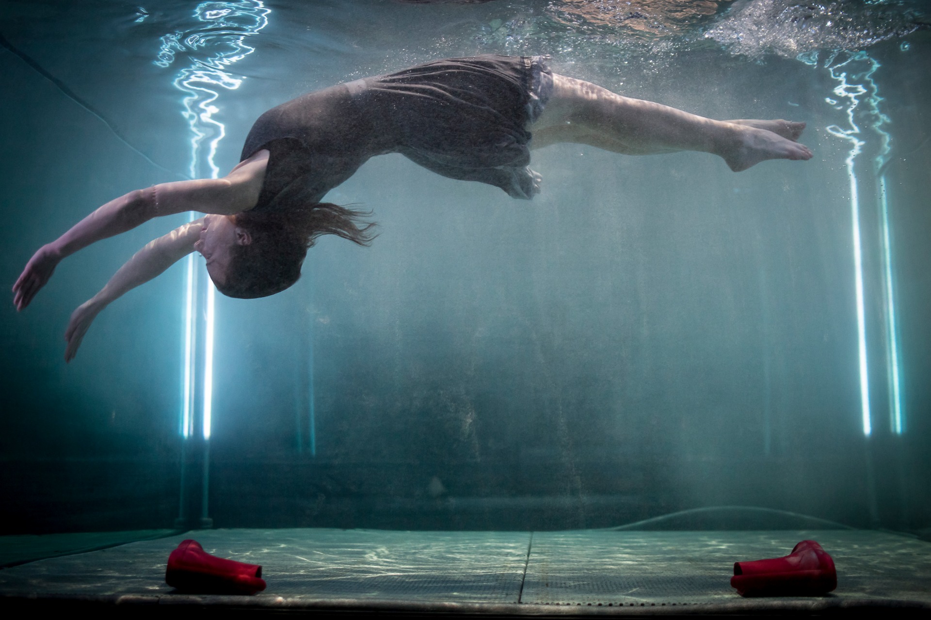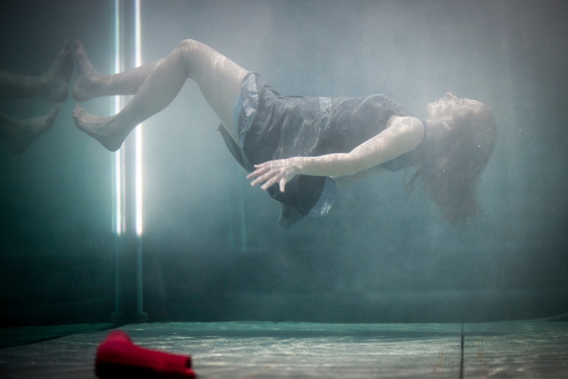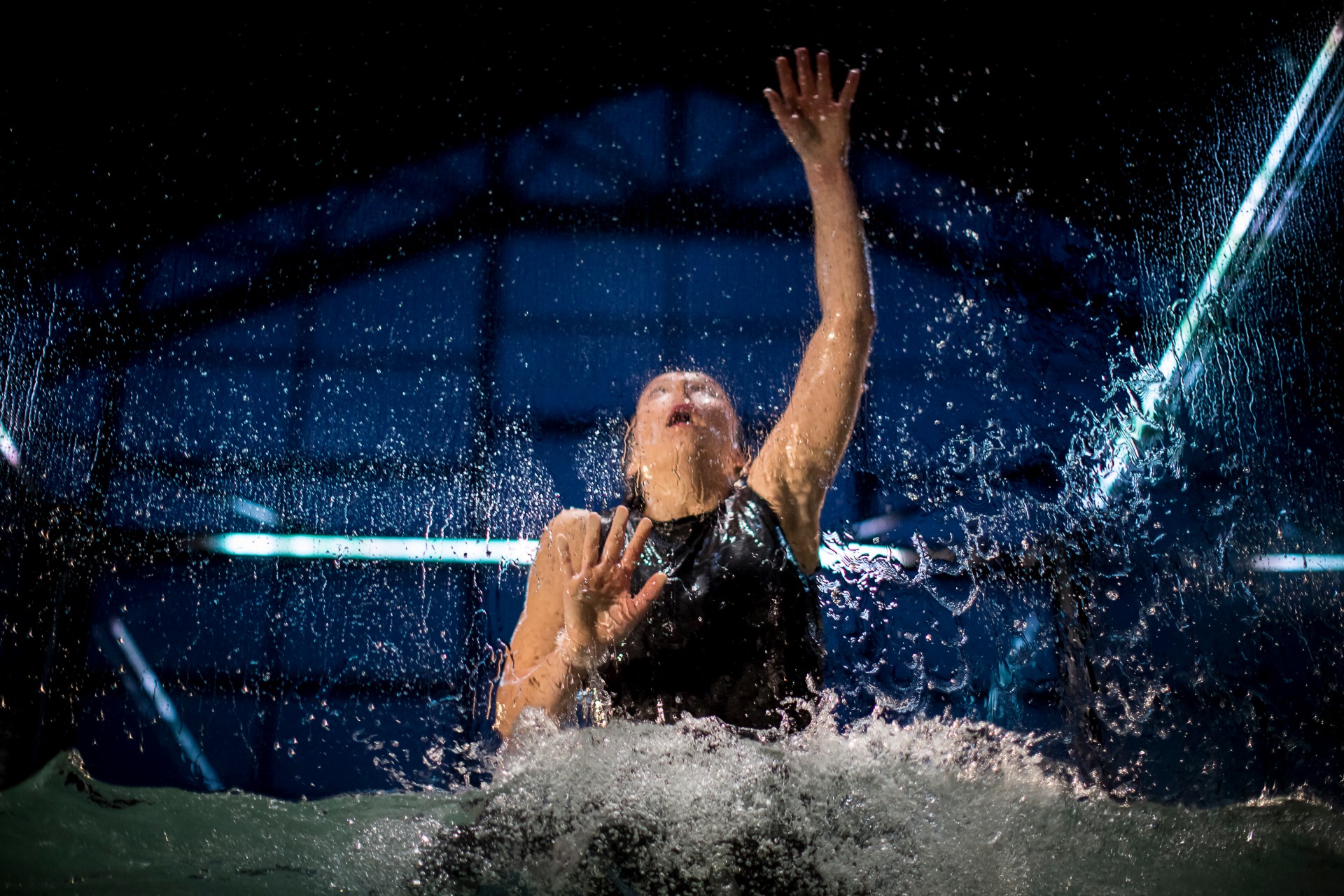 Ačkoliv je režisérova existenciální linka sebevíce zajímavá, plného zážitku se divákům dostane v momentě, kdy ji porozumí a začnou ji vnímat už jen na pozadí. Přesně v tom okamžiku se jim otevře jiná stránka představení - stejně strhující a poutavá. Velká část práce byla věnována především vizuální a hudební složce tvaru. Mimo jiné stojí za zmínku trénink s akvabelami, který herečka jako přípravu musela podstoupit. To se projevuje především, když je v krychli všech dvanáct tisíc litrů vody. Kreace předváděné v těchto chvílích oplývají ladnými pohyby. V přesném načasování se střídá jejich lehkost a živelnost. Chvílemi zavdávajícími dojmu, že se před našimi zraky nepohybuje žena, ale tvor, pro něhož je voda domovem. Mimo to si celý tvůrčí tým skvěle poradil i s jinými stupni vodní hladiny. Využil ji pro další efekty, které voda stříkající na stěny akvária může vytvářet. Časem a s postupně narůstající hladinou se dostává i mimo čtyři stěny nádrže a nachází si své cíle mezi členy obecenstva. Shodou okolností ten den pršelo, takže se postupně objevovaly v hledišti kapuce nasazené na hlavách diváků. Další nepochybný důkaz, že nejsme chráněni a vše se týká i nás samotných.